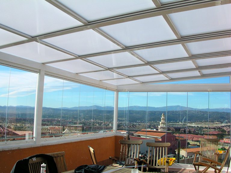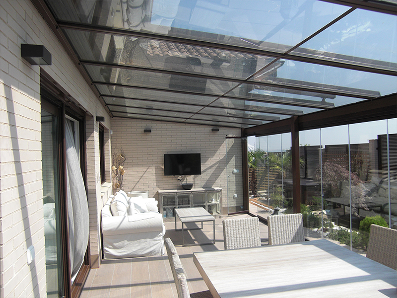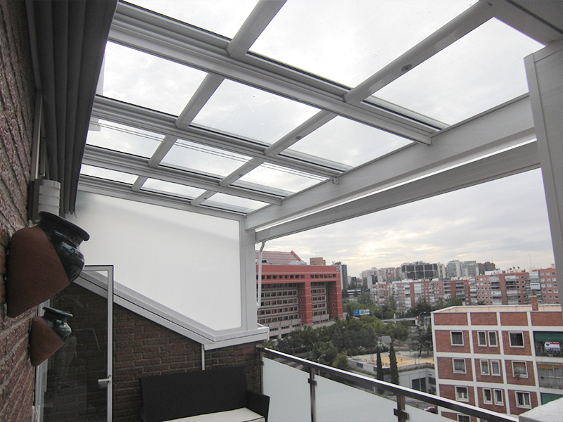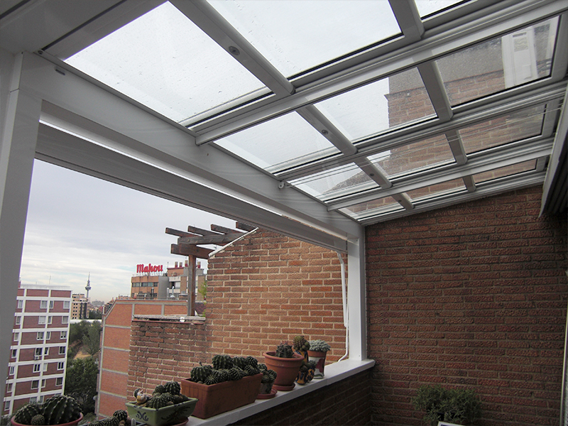 Techo móvil deslizante realizado con vidrio laminar de seguridad 3+3 transparente o mate, placas de policarbonato celular o panel sándwich, ambos de 16 mm de espesor. Es un sistema ligero y con un cuidado diseño donde prima la funcionalidad a un precio competitivo.