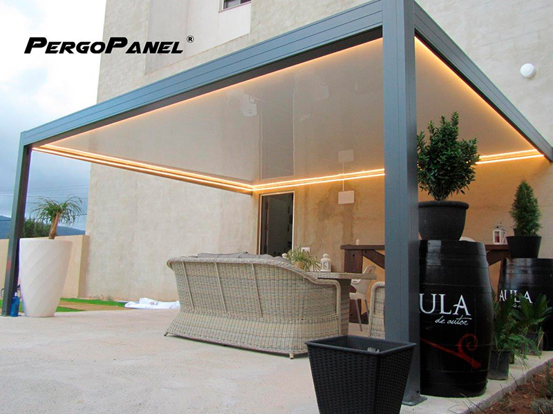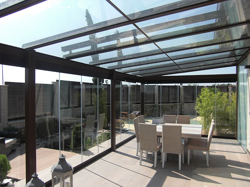 Nuestra gama de techos fijos cubre una gran variedad de necesidades. Son estructuras auto portantes de gran resistencia y durabilidad, disponemos de diferentes vigas en función de las dimensiones. La cubierta superior puede ser de vidrio laminar 4+4, policarbonato celular o paneles sándwich 16mm, 52mm y 82mm con distintos acabados.